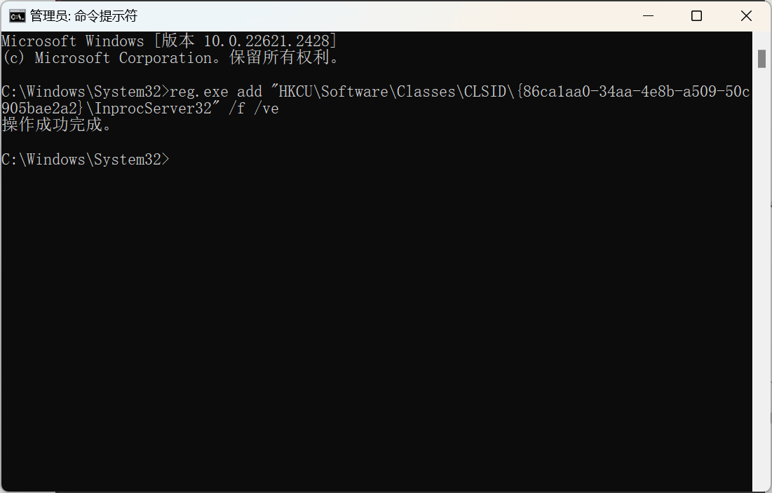 reg.exe add “HKCU\Software\Classes\CLSID{86ca1aa0-34aa-4e8b-a509-50c905bae2a2}\InprocServer32” /f /ve