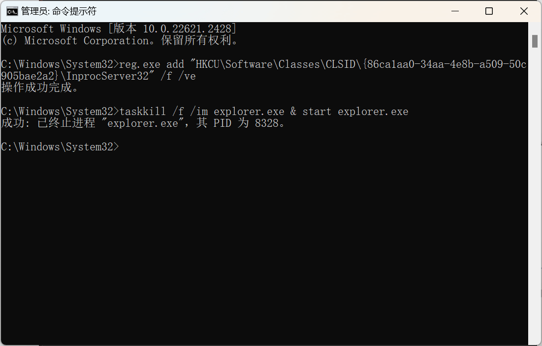 重启资源管理器,运行以下命令: